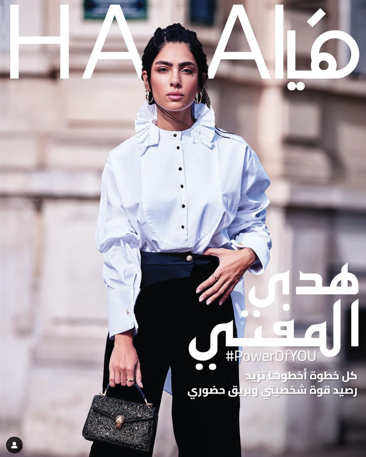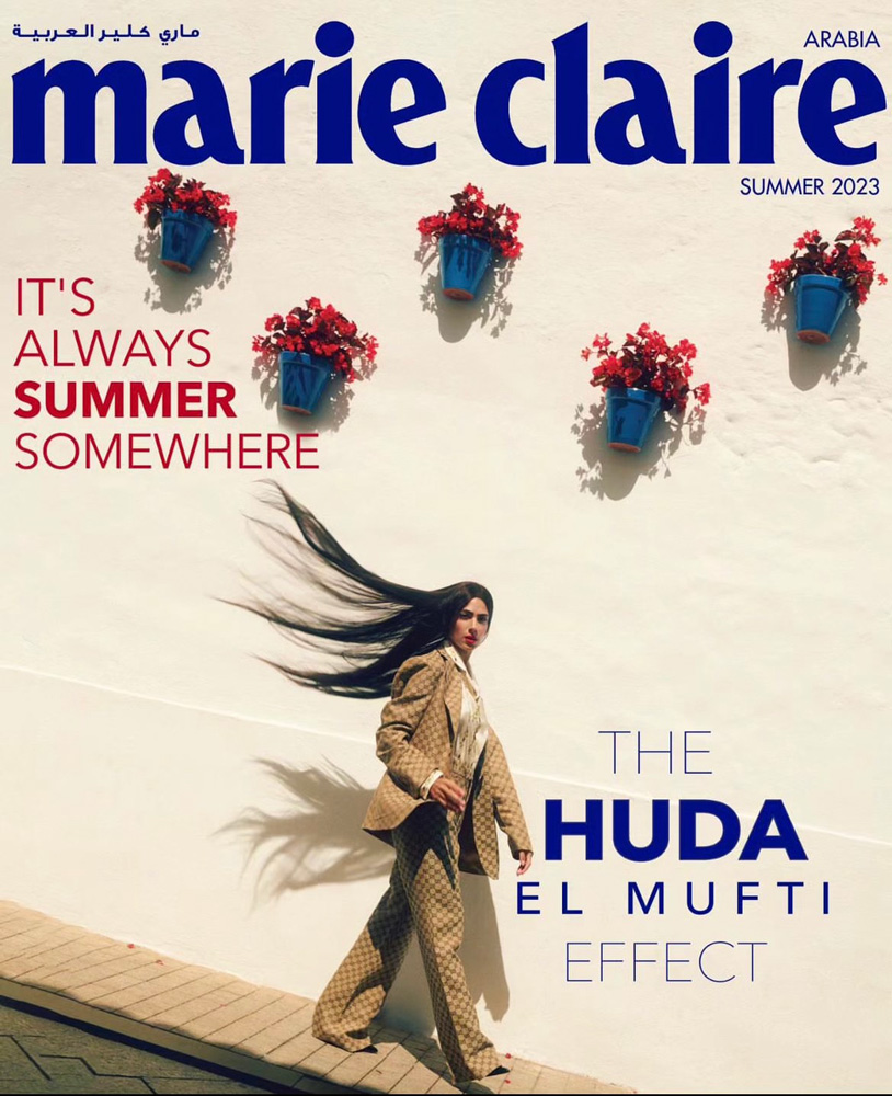 Besides films and TV series, El Mufti had a significant presence in many key magazines, including Vogue Arabia, Harper's Bazaar, and Marie Claire. She has graced the covers of Elle Arabia Magazine and Marie Claire, where she was styled by the prestigious Gucci, and was featured on the cover of Hia magazine's March issue in honor of International Women's Day.