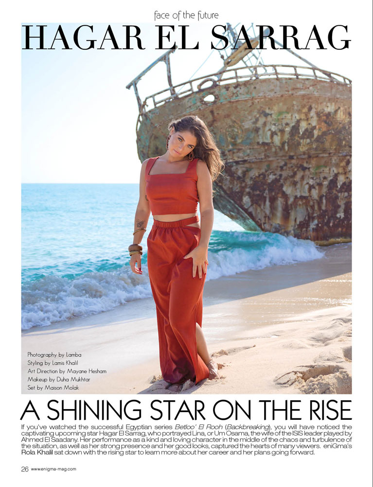 Egyptian Syrian actress Hagar ElSarrag bedazzled the audience in the 2022 Ramadan hit BETLOU AL-ROUH, where she stars as the wife of ISIS leader Omar Al Desouky, played by Ahmed Elsaadany, in the Syrian city of Ar Raqqah.