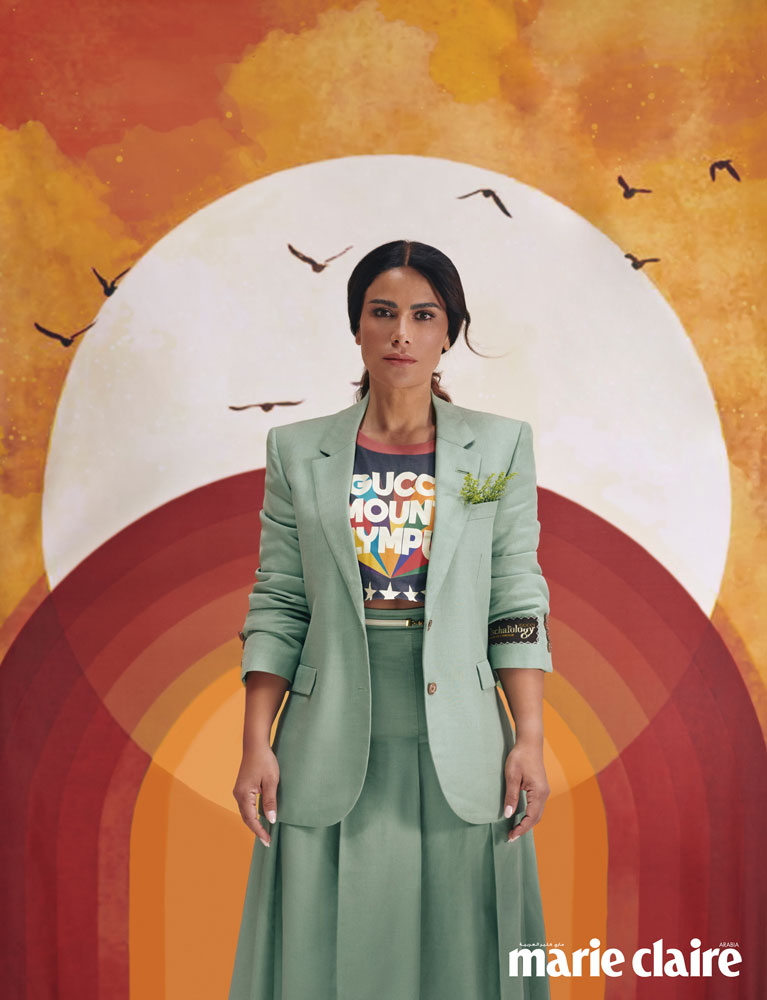 In the same year, Saba graced the cover of Marie Claire Arabia, where she was wearing Gucci’s Pre-Fall 2021 collection.